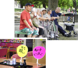 - ●春は近くの公園にお散歩、夏の午後には盆踊りの後にビールを一杯。秋にはお抹茶でほっと一息。冬はクリスマス会開催。心と五感を豊かにお過ごしいただけます。